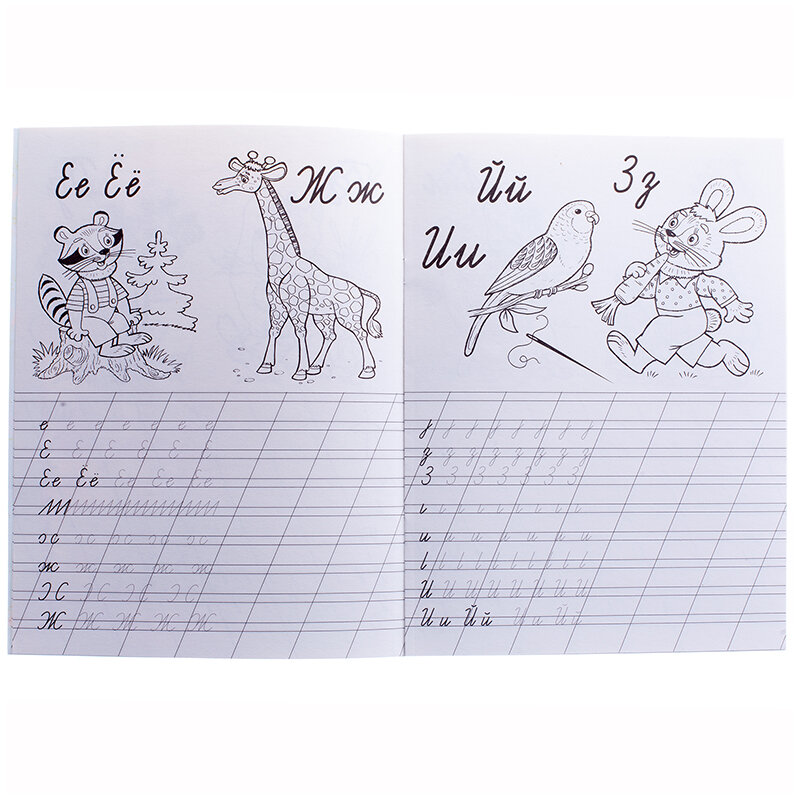 Очень хорошая обучающая книжка для дошкольников. В ней изучение ребенком русского алфавита происходит двумя способами: с помощью прописей и посредством небольших картинок на каждую букву, которые можно раскрасить. Удобно, что страницы разлинованы, как в тетради для 1-го класса, с косой вертикальной полосой. Прежде чем ребенок начнет писать буквы, ему предлагается потренироваться на черточкаХ, ягодах, фруктах и других предметах. Надо отметить, что дети не очень любят прописи, но эта книжка дает возможность не только трудиться, выписывая буквы, но и отдыхать, раскрашивая картинки.