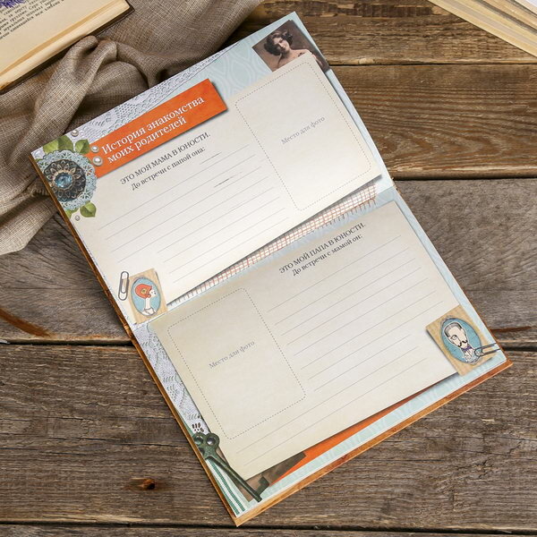 Очень нужная книга, которая должна храниться в каждой семье и передаваться из поколения в поколение. Как жаль, что у меня такой не было раньше. Но я уже начала ее заполнять. Здесь есть страницы братьев и сестер, родителей, прародителей. Есть любимые праздники, путешествия, дни рождения. В общем, славный подарок для потомков. Трудности есть, потому что нет у меня старинных фото. Зато появилось желание объездить родственников и найти фотографии моих предков. Как это романтично и восхитительно. Не скажу, что корни далеки - прадеды и прабабушки начинают историю семьи. Но хочется уже докопаться далее, поглубже. Мои гости, увидев эту книгу, захотели иметь такую же. Решила заказать еще и подарить снохе. С остальными поделилась адресом сайта.
