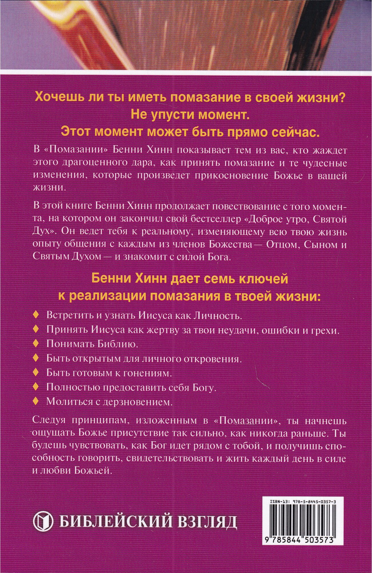 .В "Помазании" Бенни Хинн показывает тем из вас, кто жаждет этого драгоценного дара, как принять помазание и те чудесные изменения, которые произведет прикосновение Божье в вашей жизни.