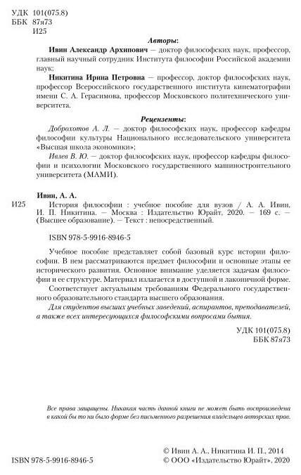 История философии. Учебное пособие для академического бакалавриата (Ивин Александр Архипович; Никитина Ирина Петровна); ЮРАЙТ, 2019