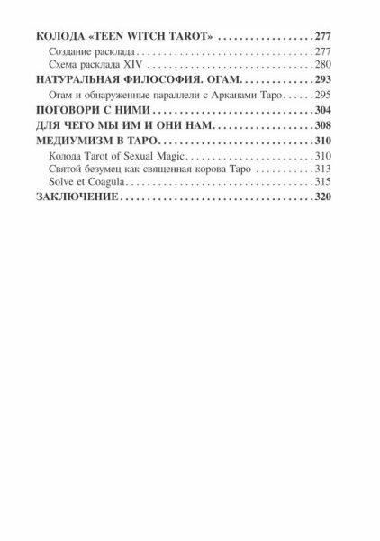 Магазин сработал отлично. Обслуживание, доставка. Всё на высоте. Издатель тоже молодец. Твёрдая обложка, хорошая бумага, чёрно-белые но очень чёткие иллюстрации. На этом всё. Тираж книги указан как всего 300 !? экземпляров. Видимо за эксклюзивность издания такая неоправданная цена. Она завышена раза в три, так как содержание того не стоит. Вынесенные в аннотацию слова долговременного изучения традиций разнообразных магических культур непосредственно в контакте со специалистами аутентичных направлений - ведьмами и магами России, и ведьмами Салема, США, штат Массачусеттс являются не более чем уловкой. По факту, ведьмам Салема посвящено чуть меньше четверти страницы. И всё. Ожидая раскрытия информации именно по колдовству а не мантике, наталкиваешься на фразу в том духе, что по этому вопросу и так достаточно литературы, зачем рассматривать лишний раз. Медитации на Арканы в том же урезанном по верхам виде. Много ляпов связанных с Артуром Уэйтом. Смотрим в аннотацию ...в научном аспекте. Ну хоть бы Юнга работу Синхронистичность упомянули. А так, нет тут научного аспекта. Хотите практического применения карт -есть навскидку книги Ирины Тризны и Жанны Рени, да любой викканский учебник по обустройству алтаря и применению карт полезнее. Но только не это.