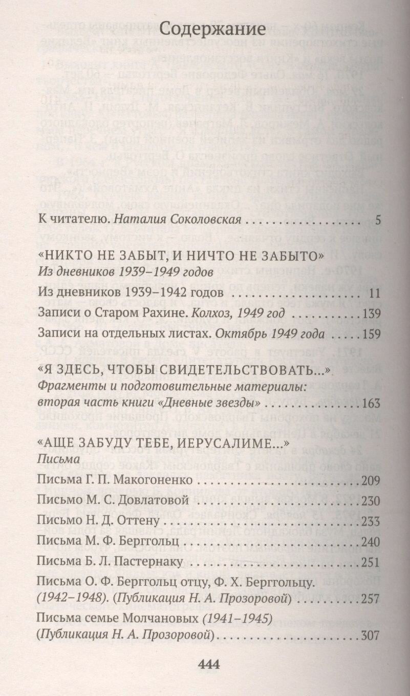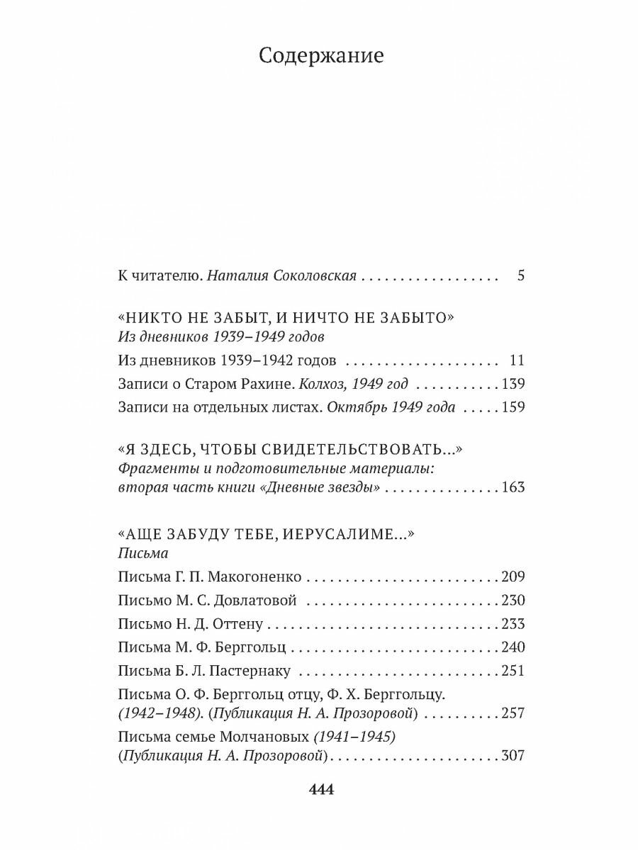 Ольгу Берггольц называли "ленинградской Мадонной", она была "голосом Города" почти все девятьсот блокадных дней. По дневникам, прозе и стихам О. Берггольц, проследив перипетии судьбы поэта, можно понять, что происходило с нашей страной в довоенные, военные и послевоенные годы. В настоящее издание вошли ошеломляющей откровенности и силы дневники 1939—1949 годов, письма, отрывки из второй, так и не дописанной части книги «Дневные звезды». Также публикуются письма к семье Молчановых, предоставленные для этого издания Рукописным отделом Пушкинского Дома. В них нашли свое отражение важные темы, относящиеся к военной биографии и творчеству поэтессы, наиболее драматичная из которых — смерть от голода в осажденном Ленинграде ее второго мужа, литературоведа Николая Степановича Молчанова.