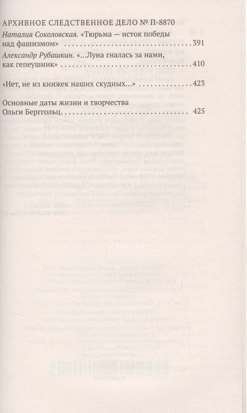 Давно хотела познакомиться с творчеством Ольги Берггольц и узнать больше о ее судьбе, поэтому была очень рада купленной книге. Прочитала на одном дыхании. Книга затронула меня до глубины души. Какая же тяжелая судьба была у этой женщины и как много выпало на ее долю испытаний... Рекомендую эту книгу всем.