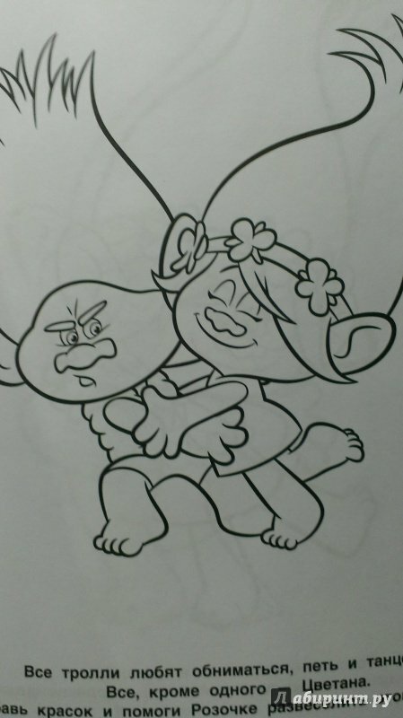 Отличная раскраска!Доступно и доходчиво рассказано о главных героях прекрасного,доброго и очень музыкального мультфильма "Тролли".Качество печати превосходное!С удовольствием раскрашивали и клеили наклейки из альбома Тролли,который приобрели также через интернет-магазин Буквоеда.Спасибо любимому магазину!