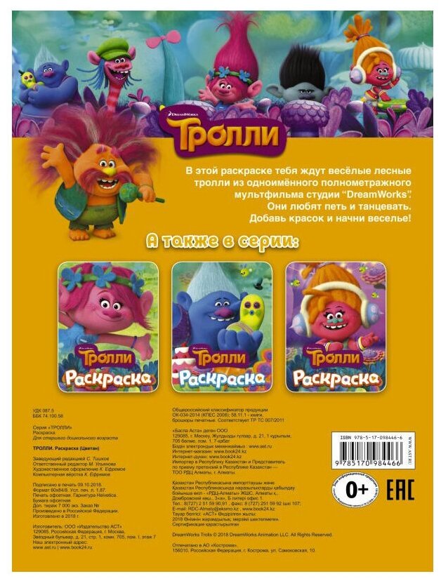 Тролли. Цветан. Раскраска (.); ИЗДАТЕЛЬСТВО "АСТ", 2016