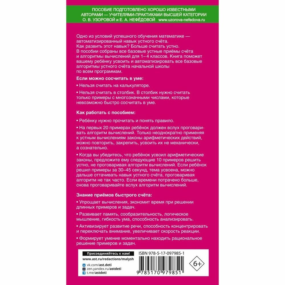 Самый быстрый способ научиться устному счету (Нефедова Елена Алексеевна, Узорова Ольга Васильевна); Сова. Малыш (Обучающая и развивающая литература), 2021