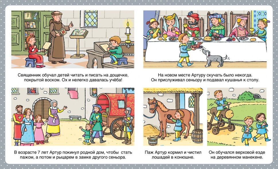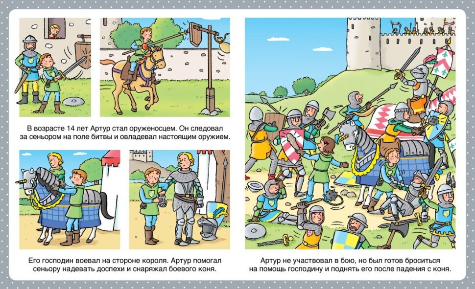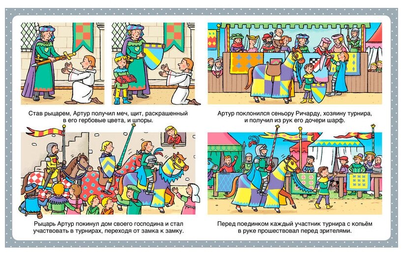 Эта книжка из серии энциклопедий для самых маленьких рассказывает как средневековые рыцари учились военному искусству, участвовали в турнирах и сражениях.