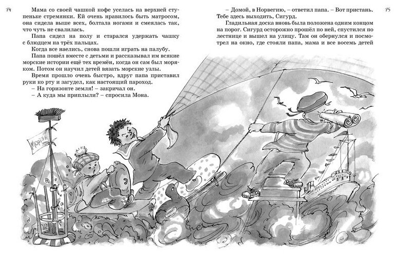 Любимая книга детства. Чудесные добрые истории о большой дружной семье, об отношениях родителей и детей, детей друг с другом, о путешествиях и маленьких приключениях. С каждым из нас каждый день происходит что-то, более или менее веселое и интересное. Возможно, не самое яркое запоминающееся, но все же оставляющее свой маленький отпечаток, преподавшее какой-то нехитроумный урок. И как же увлекательно читать эти короткие теплые рассказы о простых вещах и событиях. Очень простой и приятный язык, светлый посыл, положительные эмоции - и несмотря на то, что я эти рассказы уже наизусть знала, все равно хотелось их перечитывать. Очень рекомендую. Книга наполнена любовью и заботой, вы обязательно сможете это ощутить.