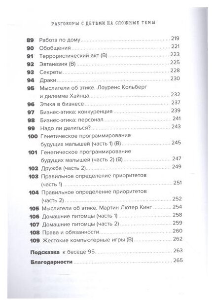 Книга «Разговоры с детьми на сложные темы» содержит сто пять тем, которые стоит обсуждать с подростками 10–15 лет, чтобы привить им ценности и привычку думать. От житейских вопросов (что значит настоящий друг; можно ли скачивать фильмы в Интернете?) — до самых сложных (нужна ли нам смертная казнь?). Майкл Паркер уверен, что хорошее образование — это лишь часть хорошего воспитания. Не менее важно с детства приучать человека размышлять над этическими дилеммами. Но делать это лучше без нравоучений, в игре и увлекательном диалоге на равных, чтобы ребенок сам приходил к верным выводам. Эта книга-шпаргалка поможет вам тактично и легко обсуждать с вашим ребенком отношения, любовь и секс, нормы и законы общества, экологию и будущее нашей планеты, понятие справедливости, этику лжи и правды.
