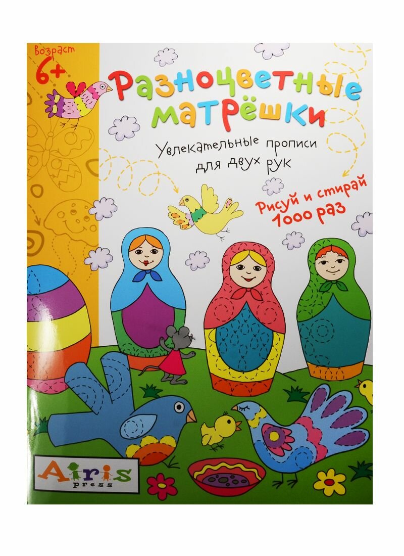 Разноцветные матрешки. Увлекательные прописи для двух рук. Рисуй и стирай 1000 раз (Куликова Елена Николаевна); Айрис-пресс, 2016