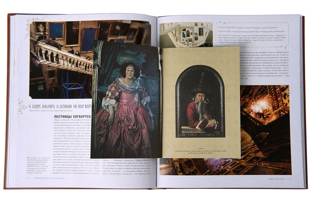 Роскошное подарочное издание, рассказывающее историю создания киноэпопеи о Гарри Поттере. Перед вами путеводитель по волшебному миру «Гарри Поттера». В новой книге вы сможете заглянуть в дом Дурслей и великолепный замок Хогвартс, побывать в Министерстве магии и хижине Хагрида и, конечно, во многих других необыкновенных местах. Вы узнаете, как выбирали места для съемок, как создавали декорации и украшали интерьеры. В этой книге вы найдете уникальные эскизы, кадры из любимых фильмов и эксклюзивные фотографии со съемок из архива киностудии Warner Bros. А еще вас ждет приятный сюрприз: карта Косого переулка и каталог картин, украшающих коридоры Хогвартса.