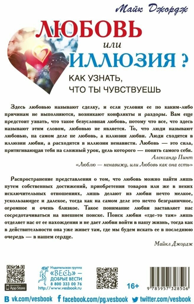 Сервис сравнения цен СкидкаГИД предлагает сравнить цены на товар «Книга: Любовь или иллюзия? Как узнать что ты чувствуешь (Майк Джордж); Весь СПб, 2016»