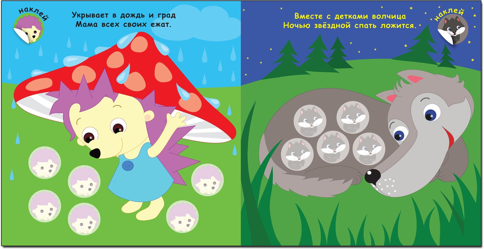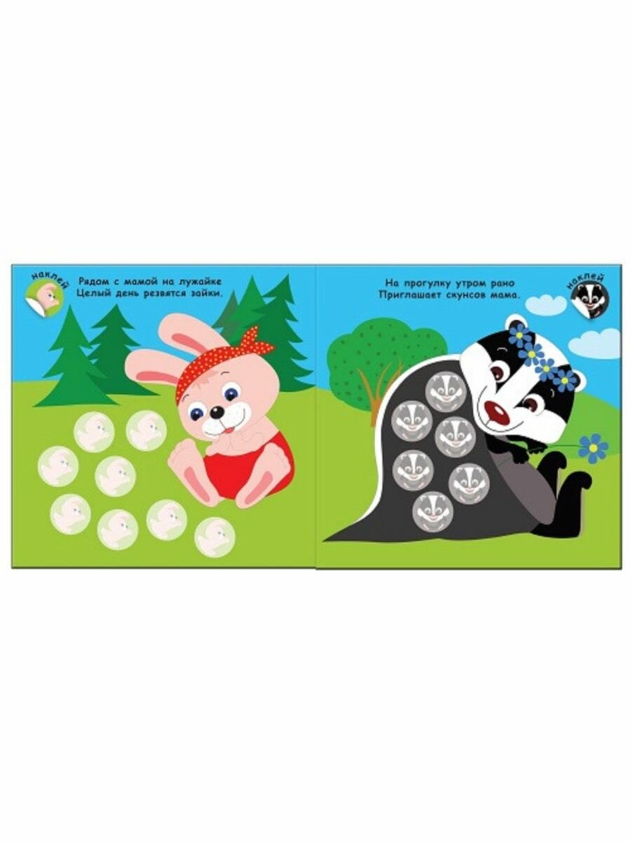 Выполняя увлекательные задания с наклейками, он узнает, кто живет в лесу. На каждой странице малыш встретит очаровательных животных с детенышами и веселые двустишия, которые помогут легко усвоить новые знания.