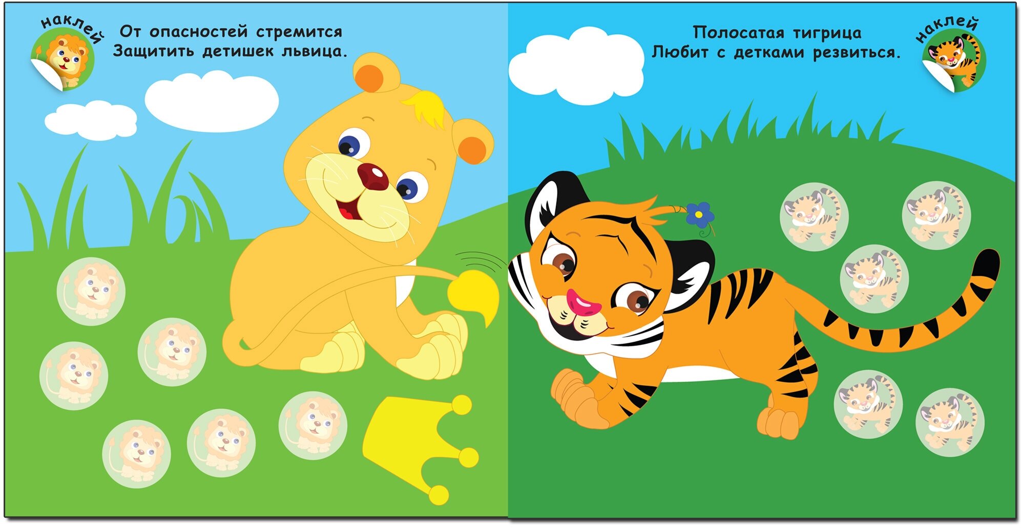 Выполняя увлекательные задания с наклейками, он узнает, кто живет в Африке. На каждой странице малыш встретит очаровательных животных с детенышами и веселые двустишия, которые помогут легко усвоить новые знания.