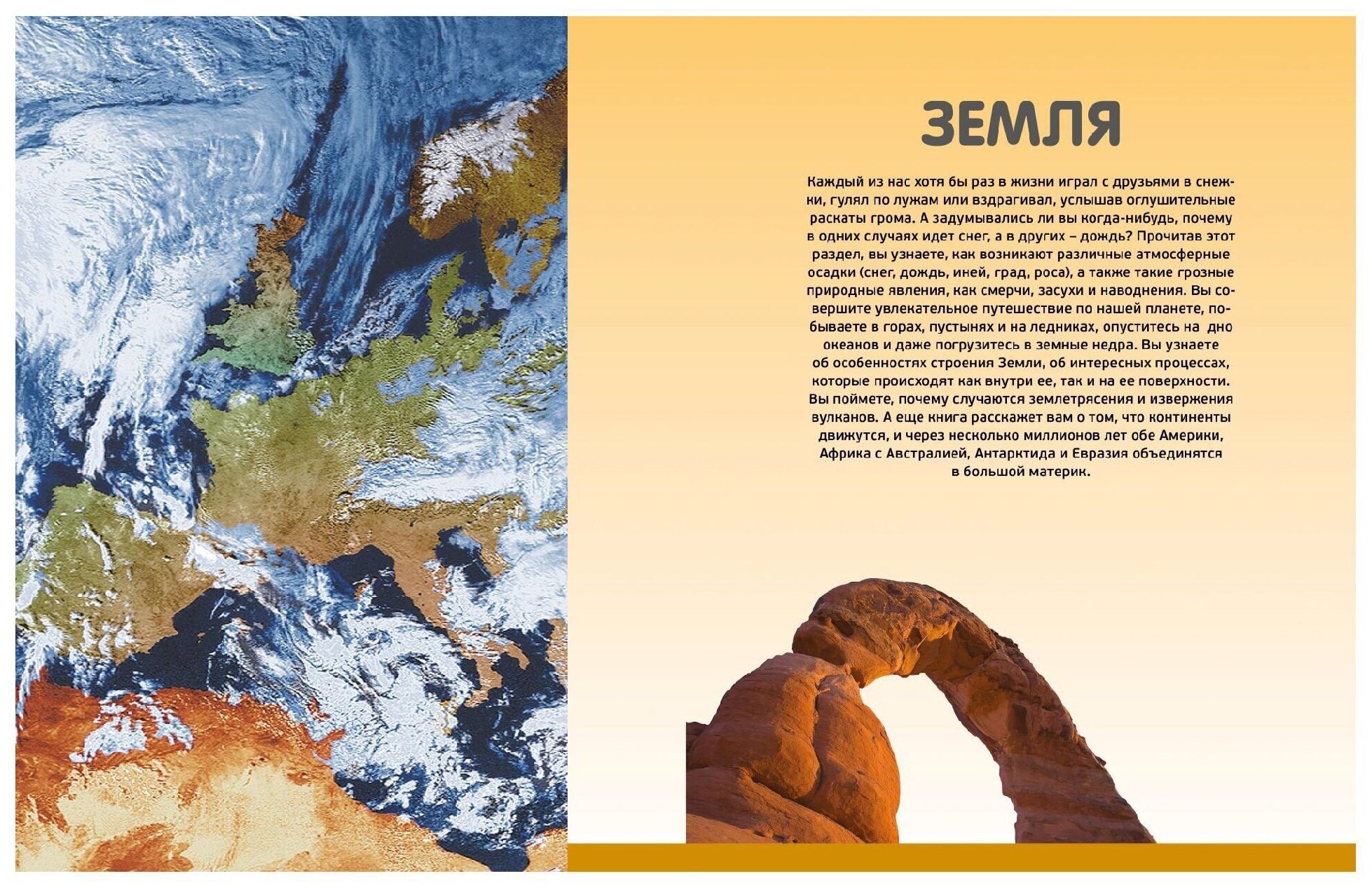 В этой энциклопедии просто и понятно рассказано о том, как устроен окружающий нас мир. Любознательный читатель узнает о зарождении и развитии Вселенной, о небесных телах и звездных системах, об этапах освоения космоса и гипотезах о внеземной жизни. Он совершит путешествие по нашей планете, побывает в горах, пустынях и полярных областях; поймет, как зарождаются морские течения, ураганы и землетрясения; познакомится с такими необычными существами, как губки, медузы, летучие мыши, и научится отличать лягушек от жаб, а крокодилов от аллигаторов. Отличные иллюстрации и богатый фактический материал позволят юному читателю получить серьезную подготовку к последующему глубокому изучению астрономии, географии и биологии.