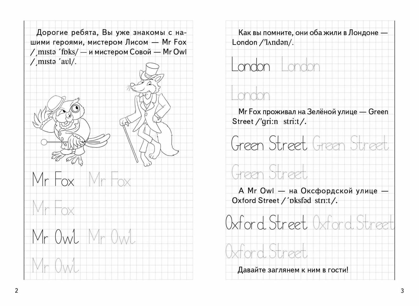В основу данных прописей, которые с полным основанием называются занимательными, легла оригинальная история знакомства двух симпатичных героев. Открывая для себя новые подробности их жизни, дети в игровой форме, через систему познавательных и творческих заданий, учатся правильно писать английские буквы и слова, получают некоторые сведения о стране изучаемого языка и образе жизни его носителей.