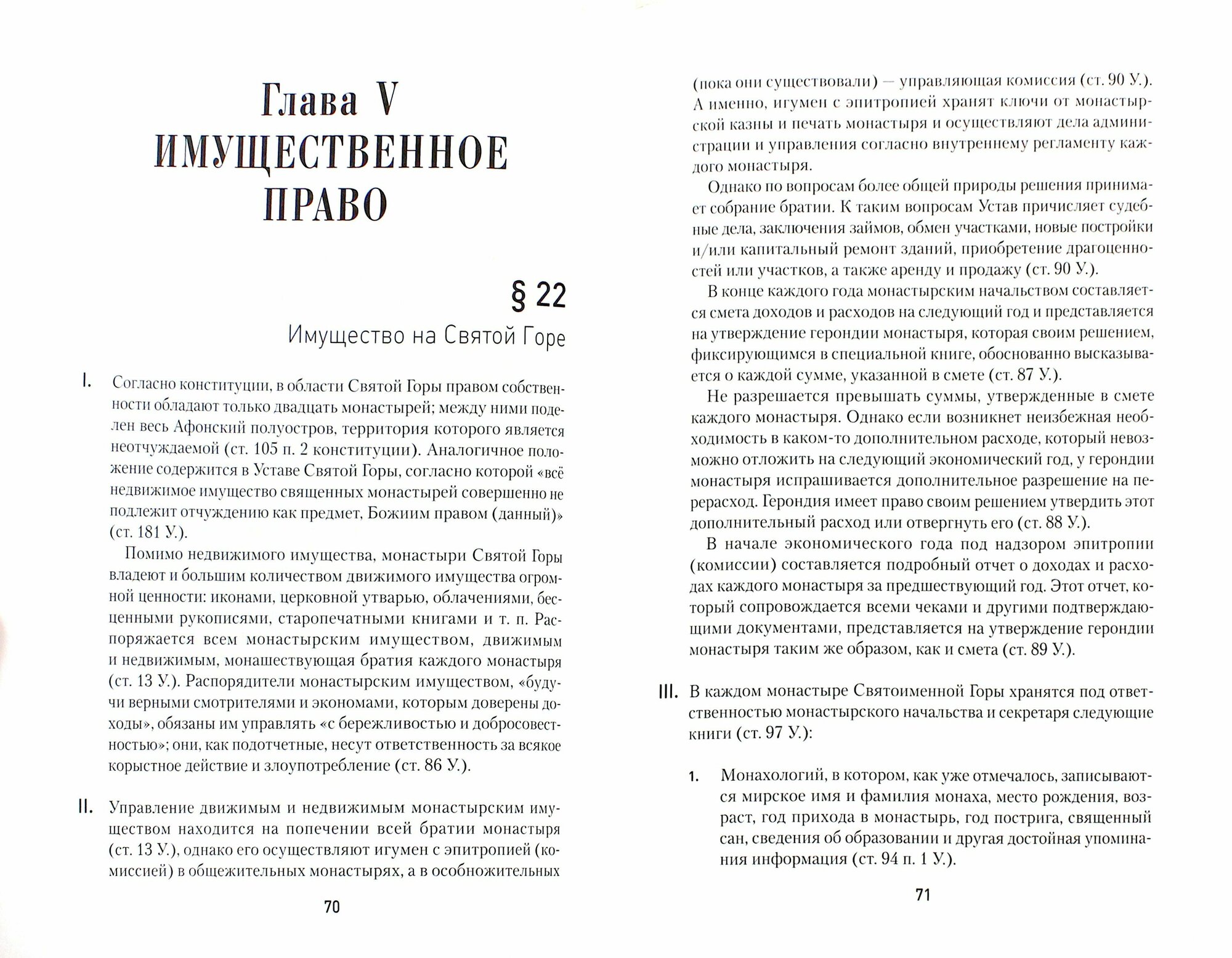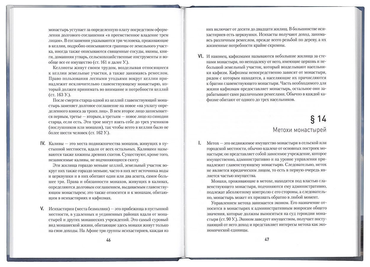 Современный выдающийся исследователь, профессор церковного права Иоаннис Конидарис четко и ясно повествует как о крайне сложных внутренних законах существования монашеской республики, так и о законах ее взаимоотношений с государством. Одна глава из его книги "Особые церковные уставы" предлагается вниманию российских читателей, питающих любовь к Святой Горе.