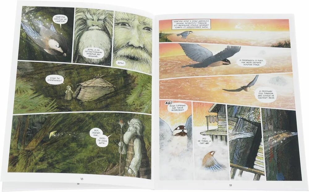 Из описания к комиксу можно представить насколько долгий путь продела эта история, чтобы добраться до русского читателя. На территории нашей страны живёт столько народов с уникальной культурой и фольклором, а мы узнаем об этом только благодаря иностранным художникам, за что им огромное спасибо. Нарисована эта сказка очень красиво. Цвета настолько приятные и живые, что хочется прикурить глаза от яркого света нарисованного солнца. Комикс небольшой, но красивый, яркий и самобытный. О его покупке никто не пожалеет.