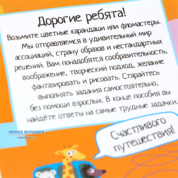 Открыв этот блокнот, ребенок попадет в волшебную страну с задачками на мышление. Вооружившись карандашом, он будет выполнять задания на логику, сообразительность и внимание, решать задачи-шутки. А в дороге или на отдыхе такой блокнот будет просто незаменим. Адресовано детям от 5 лет