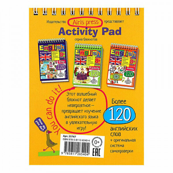 Activity Pad - делает невероятное - превращает изучение английского языка в игру. В сборнике вы найдете кроссворды, игры со словами, загадки, веселые задания. Всё это позволит выучить более 120 слов и начать говорить по-английски. Берите блокнот в поездку, разгадывайте задания в транспорте и на природе.