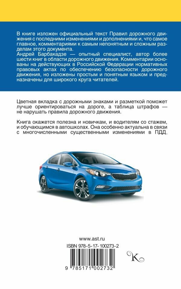 .Андрей Барбакадзе — опытный специалист, автор более шести книг в области дорожного движения. Комментарии основаны на действующих в Российской Федерации нормативных правовых актах по обеспечению безопасности дорожного движения, но изложены простым и понятным языком и предназначены для широкого круга читателей.