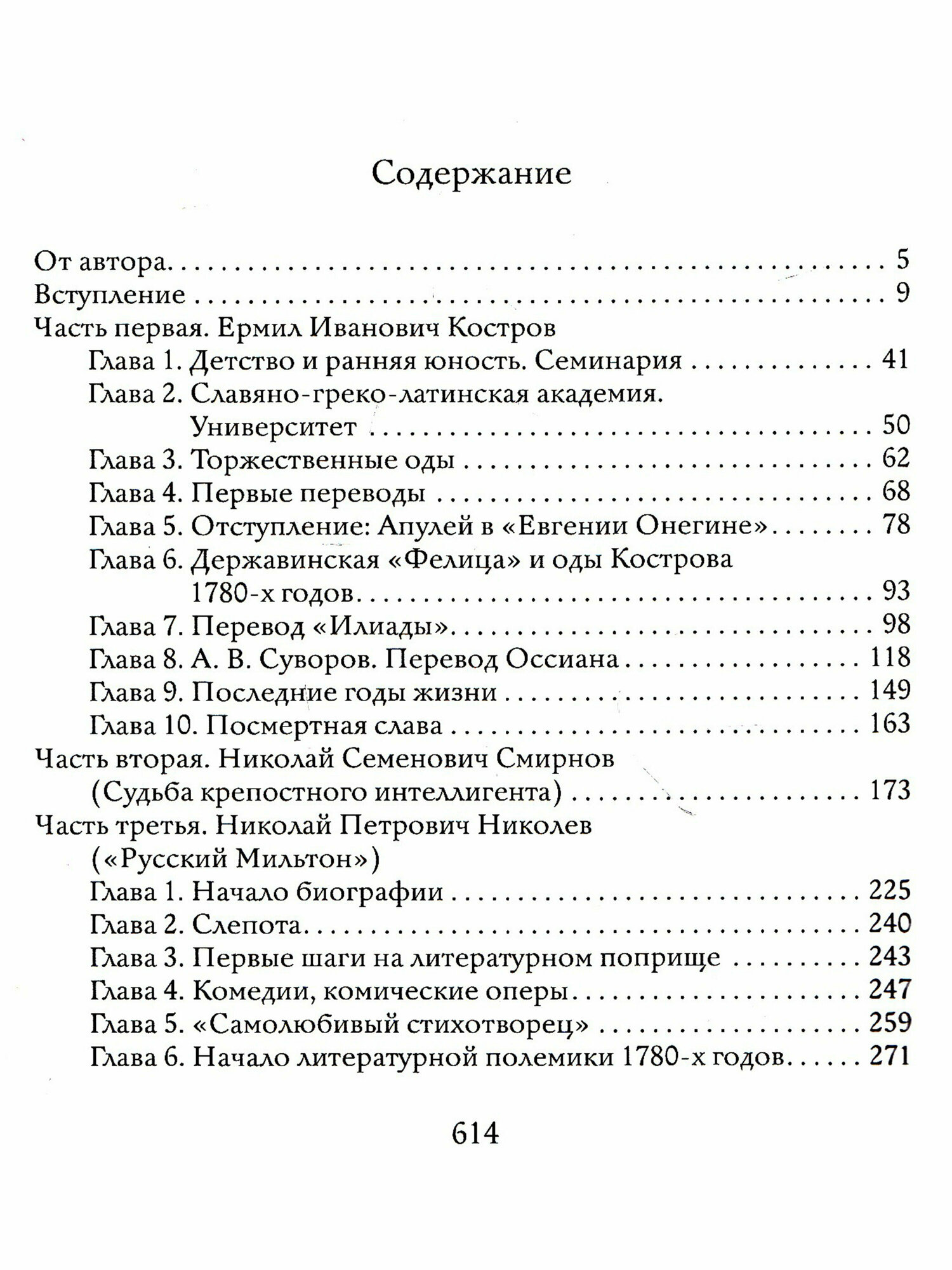 Книга посвящена жизненному и творческому пути трех русских поэтов XVIII в.: Е.И.Кострова, Н.С.Смирнова и Н.П.Николева. Собранный материал позволяет осознать ценность литературных фактов, интерес и значение которых в исторической перспективе умалилось на фоне пристального внимания к творчеству писателей "первого ряда". Помимо традиционного научного аппарата (именного и библиографического указателей) монография снабжена приложением. В нем публикуются редкие печатные и оставшиеся в рукописи произведения, рассмотренные автором. Книга представляет интерес не только для специалистов, но и для всех, кто живо интересуется историей русской литературы второй половины XVIII и первых лет XIX в., эпохи, отмеченной могучим дарованием Державина и непосредственно предшествовавшей расцвету гения Пушкина.
