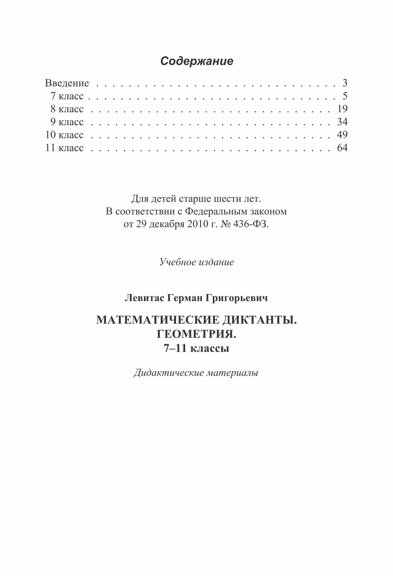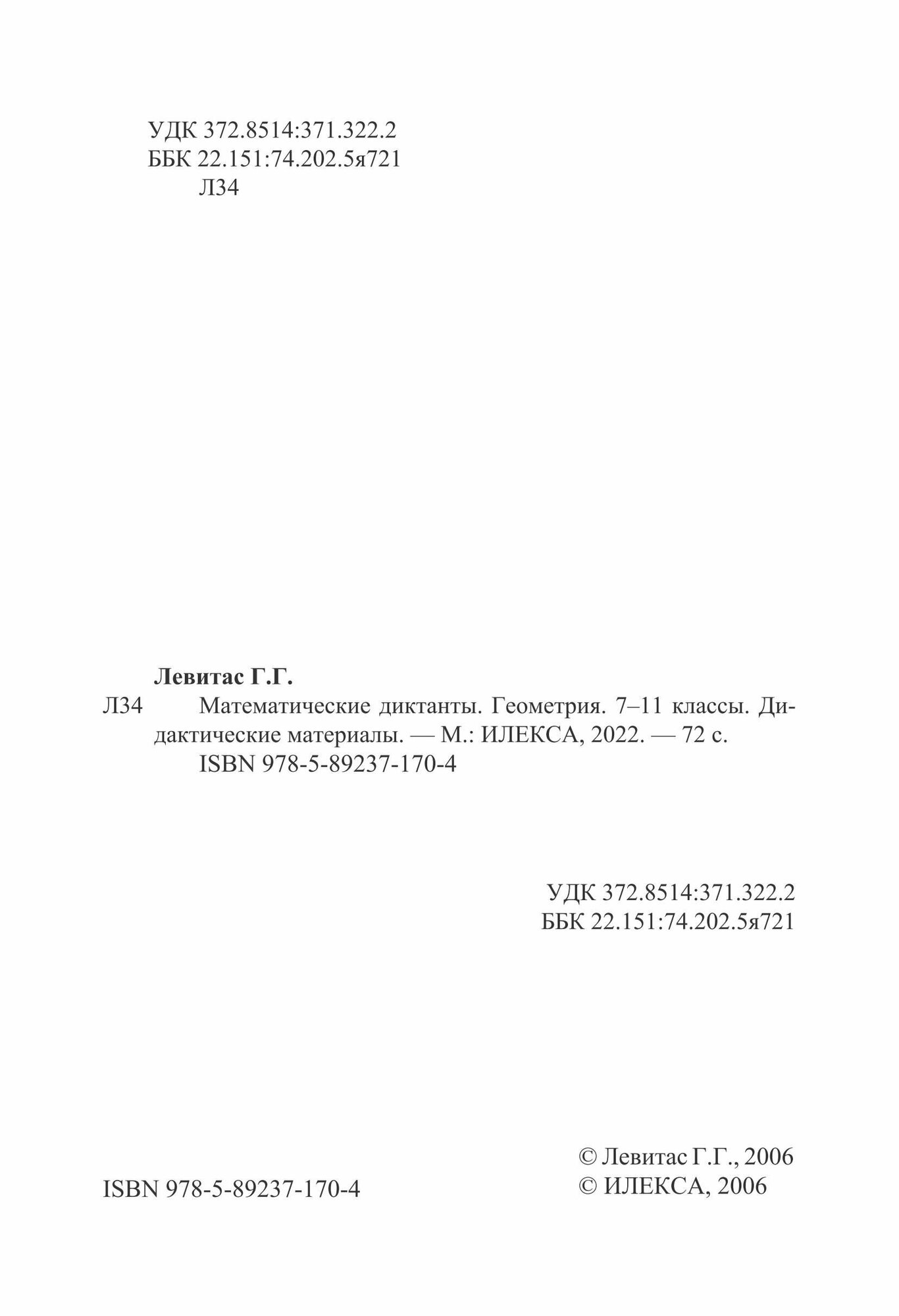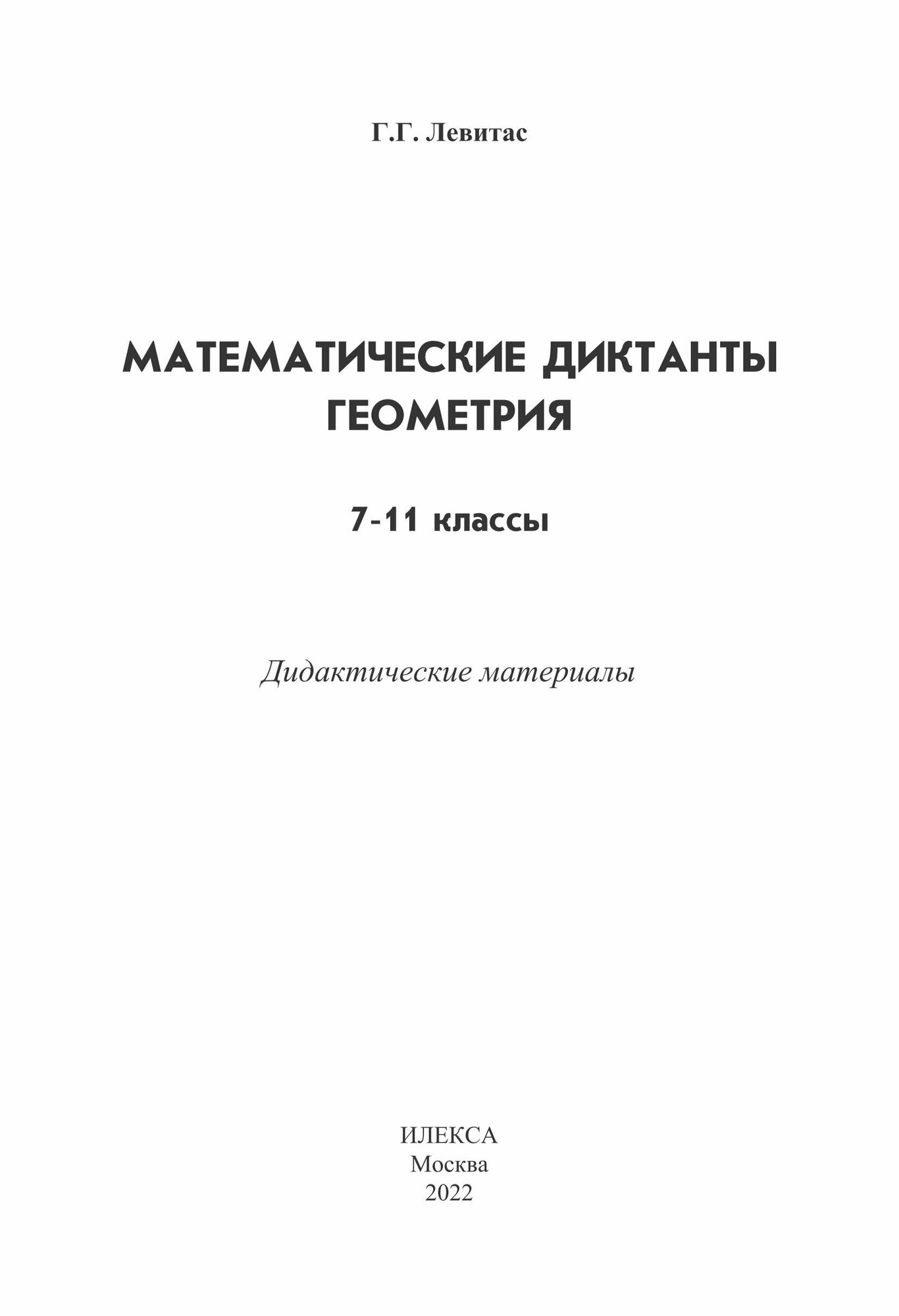 Математические диктанты. Геометрия. 7-11 классы. Дидактические материалы (Герман Григорьевич Левитас); Илекса, 2016