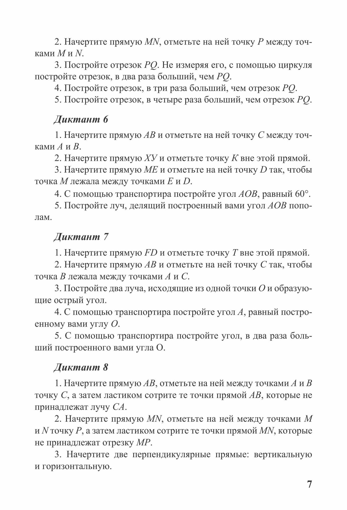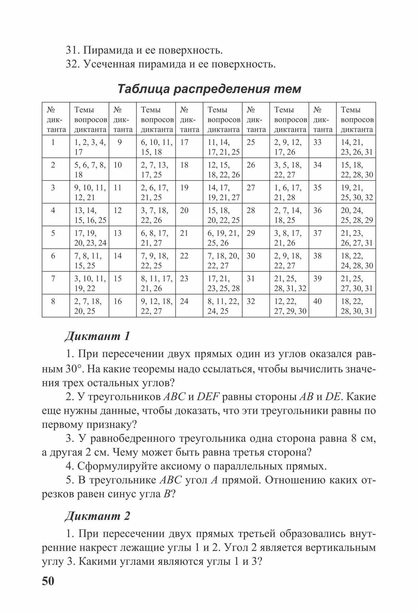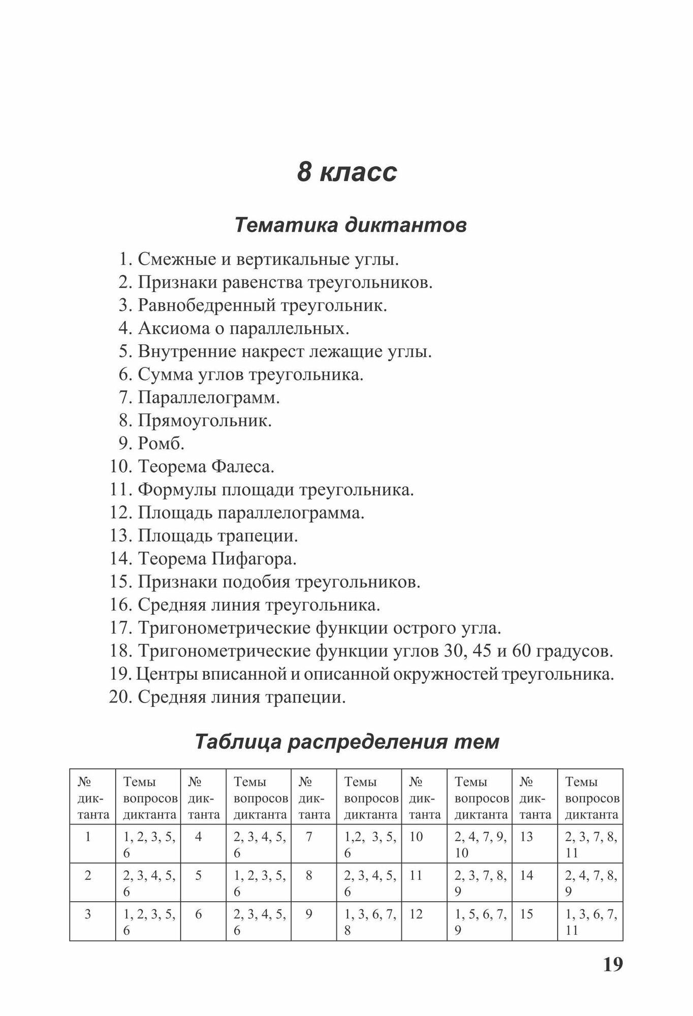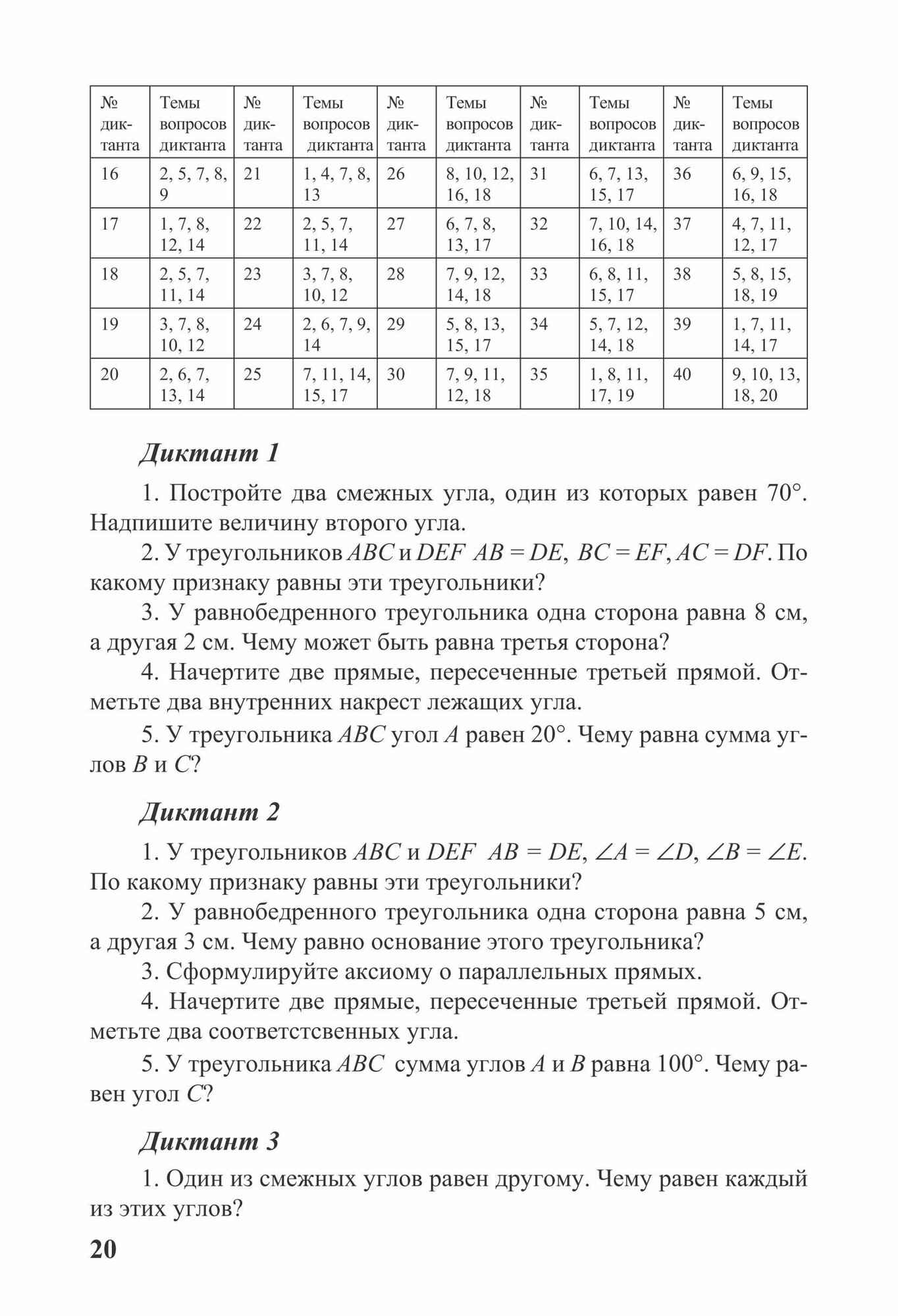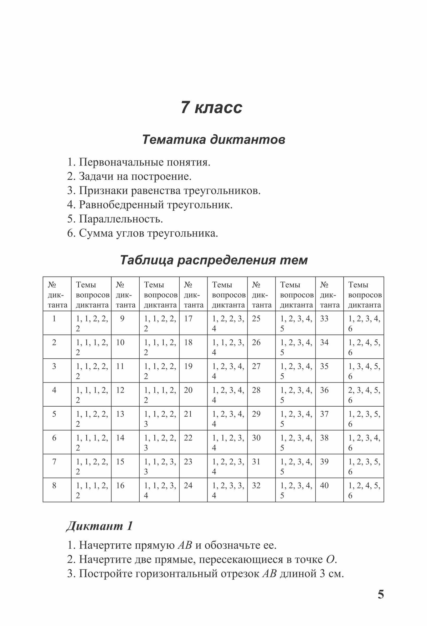 Среднее образование. Самостоятельные и контрольные работы Дидактические материалы содержат диктанты по всему курсу геометрии. Цель диктантов — систематическое повторение всего ранее изученного материала. Вопросы даны в такой системе, чтобы каждый элемент курса повторялся с определенной периодичностью, при этом одни элементы курса упоминаются чаще, другие — реже.По каждому классу приводятся тематика и распределение тем по диктантам.Очень полезно заранее говорить учащимся, по каким темам будет следующий диктант. Для этой цели можно распечатать и раздать план всей этой работы: список тем, по которым проводятся диктанты, и таблицу, в которой отмечено, какие темы затрагиваются в каждом диктанте.