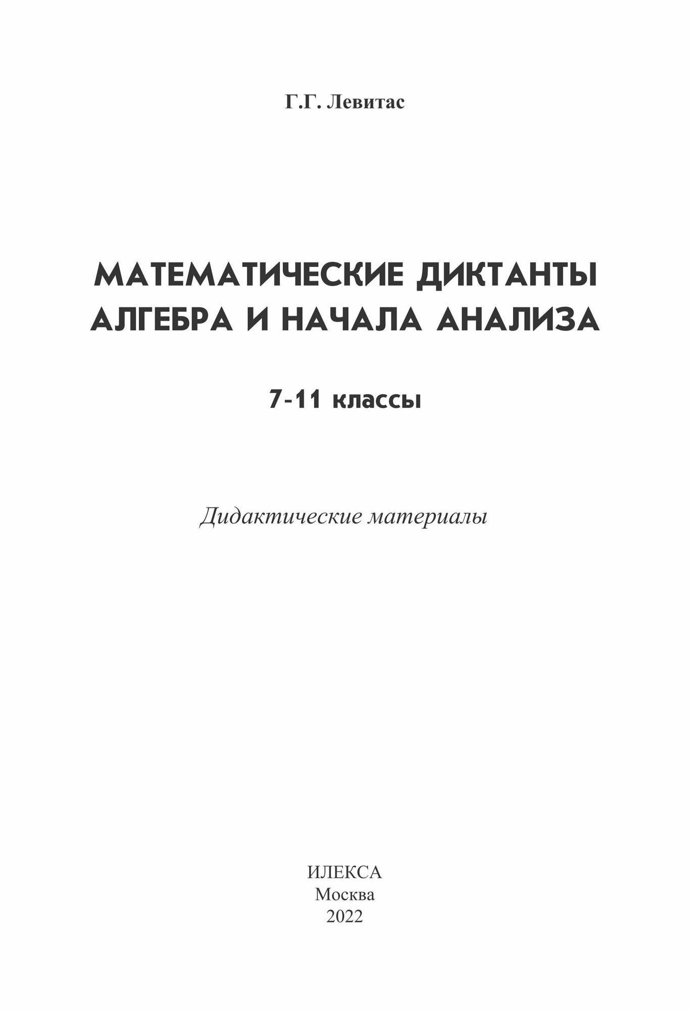 Математические диктанты. Алгебра и начала анализа. 7-11 классы. Дидактические материалы (Герман Григорьевич Левитас); Илекса, 2016