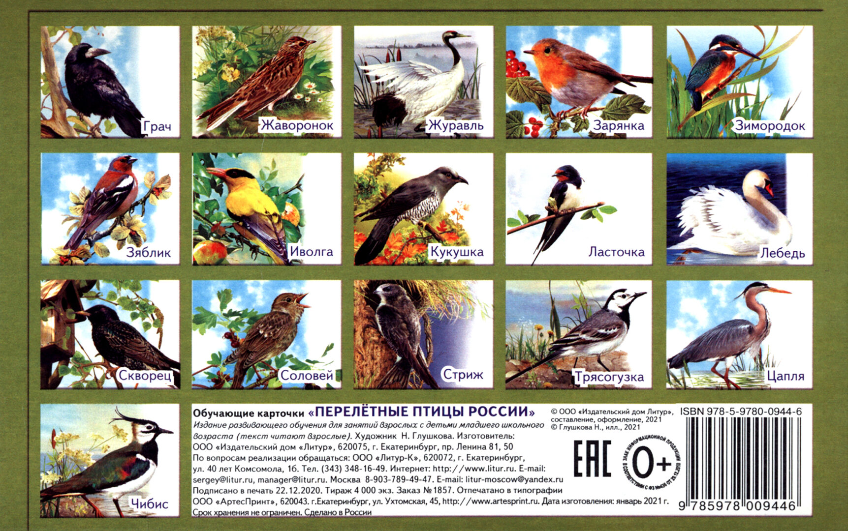 Обучающие карточки. Перелетные птицы России (Глушкова Н. (худ.)); Литур, 2016