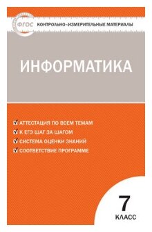 В пособии представлены контрольно-измерительные материалы (КИМы) по информатике для 7 класса. Издание составлено в соответствии с требованиями ФГОС. Структура КИМов аналогична структуре заданий ЕГЭ, что позволит постепенно подготовить учащихся к работе с подобным материалом. В конце издания предложены ответы к тестам.