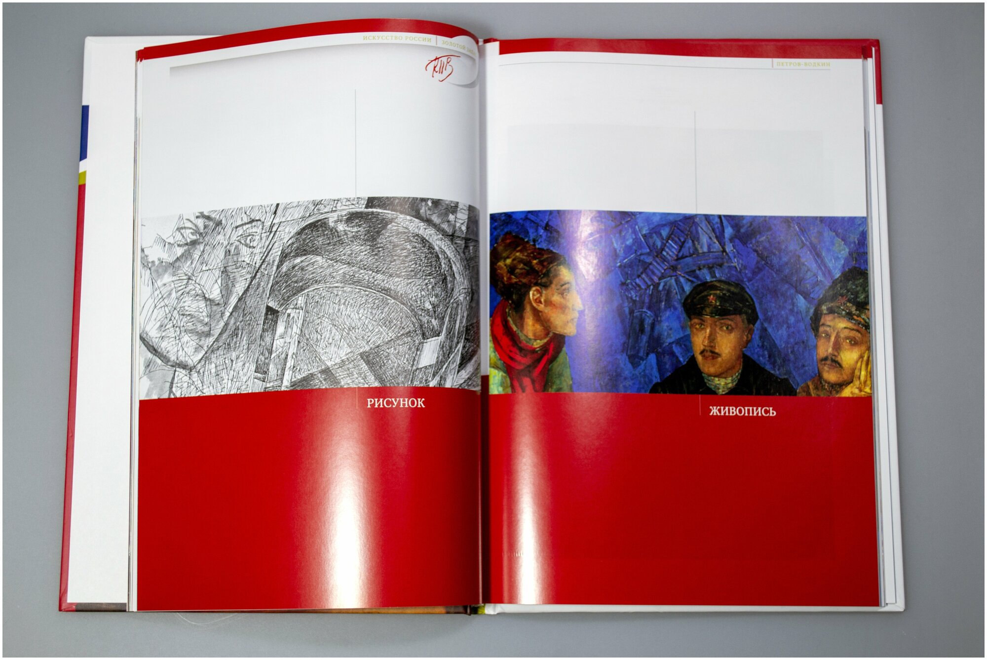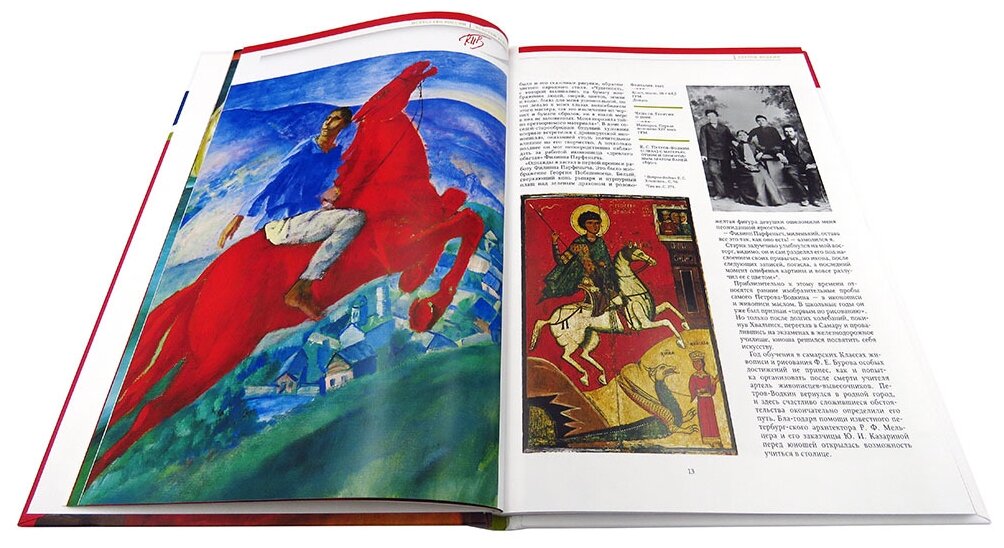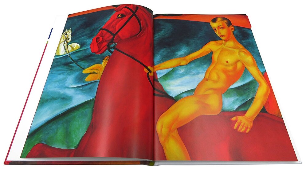 Впервые удидев картину Петрова-Водкина "1919.Тревога" была поражена, как точно художник передал испуг на на лице маленькой девочки. Эта сцена меня поразила своей простотой и красочностью, поэтому захотелось узнать побольше о творчестве русского живописца. Долго выбирала , какую именно книгу взять , чтобы была не слишком дорогой и в тоже время с качественными репродукциями картин. Остановила свой выбор на этом прекрасном альбоме, содержащем биографию художника и множество репродукций картин большого формата. Есть также иллюстрации и на половину страницы, и на треть листа, но все хорошего качества. У некоторых картин есть увеличенные фрагменты.