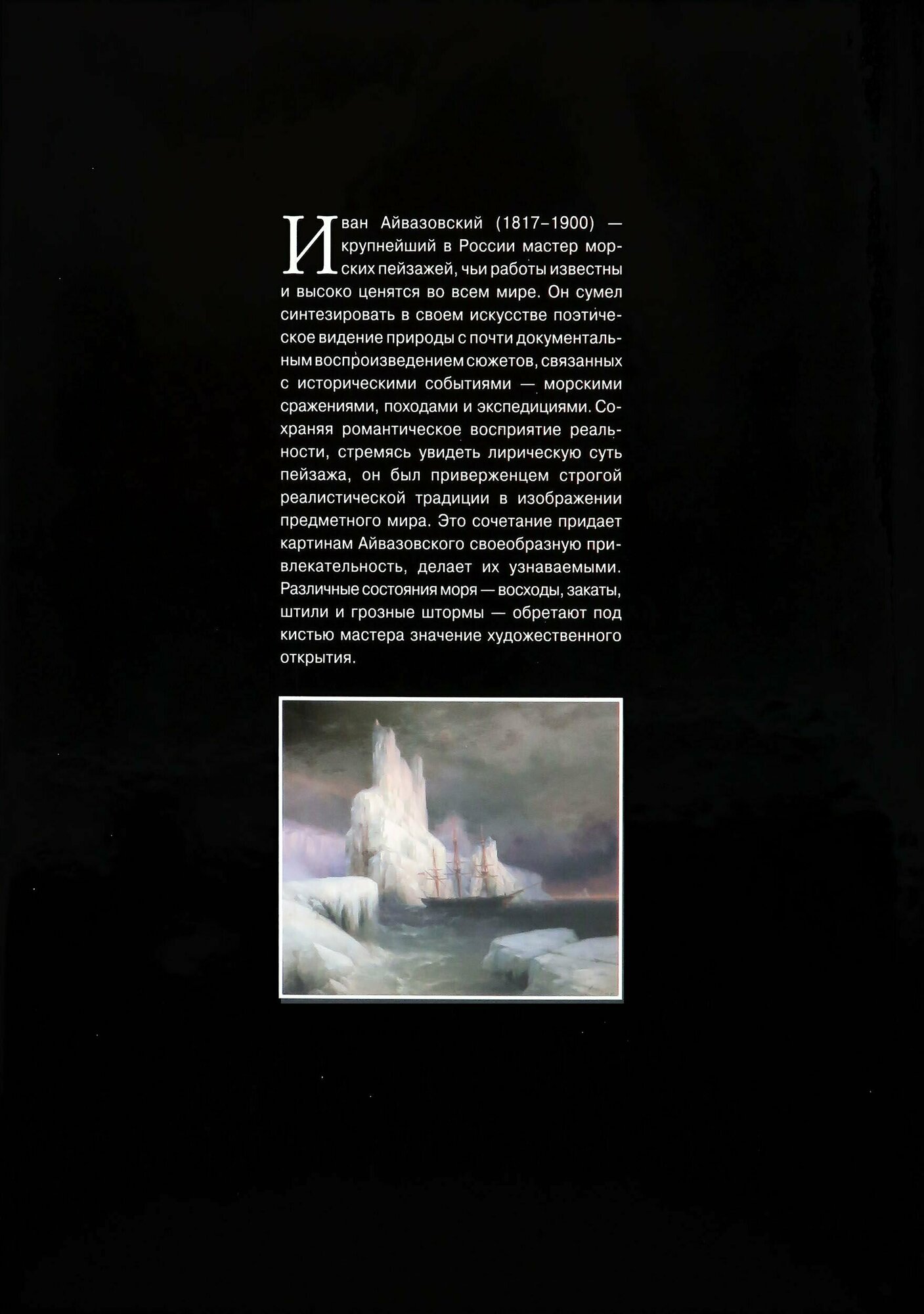 Иван Айвазовский - крупнейший в России мастер морских пейзажей, чьи работы известны и высоко ценятся во всем мире. Он сумел синтезировать в своем искусстве поэтическое видение природы с почти документальным воспроизведением сюжетов, связанных с историческими событиями - морскими сражениями, походами и экспедициями. Сохраняя романтическое восприятие реальности, стремясь увидеть лирическую суть пейзажа, он был приверженцем строгой реалистической традиции в изображении предметного мира. Это сочетание придает картинам Айвазовского своеобразную привлекательность, делает их узнаваемыми. Различные состояния моря - восходы, закаты, штили и грозные штормы - обретают под кистью мастера значение художественного открытия.