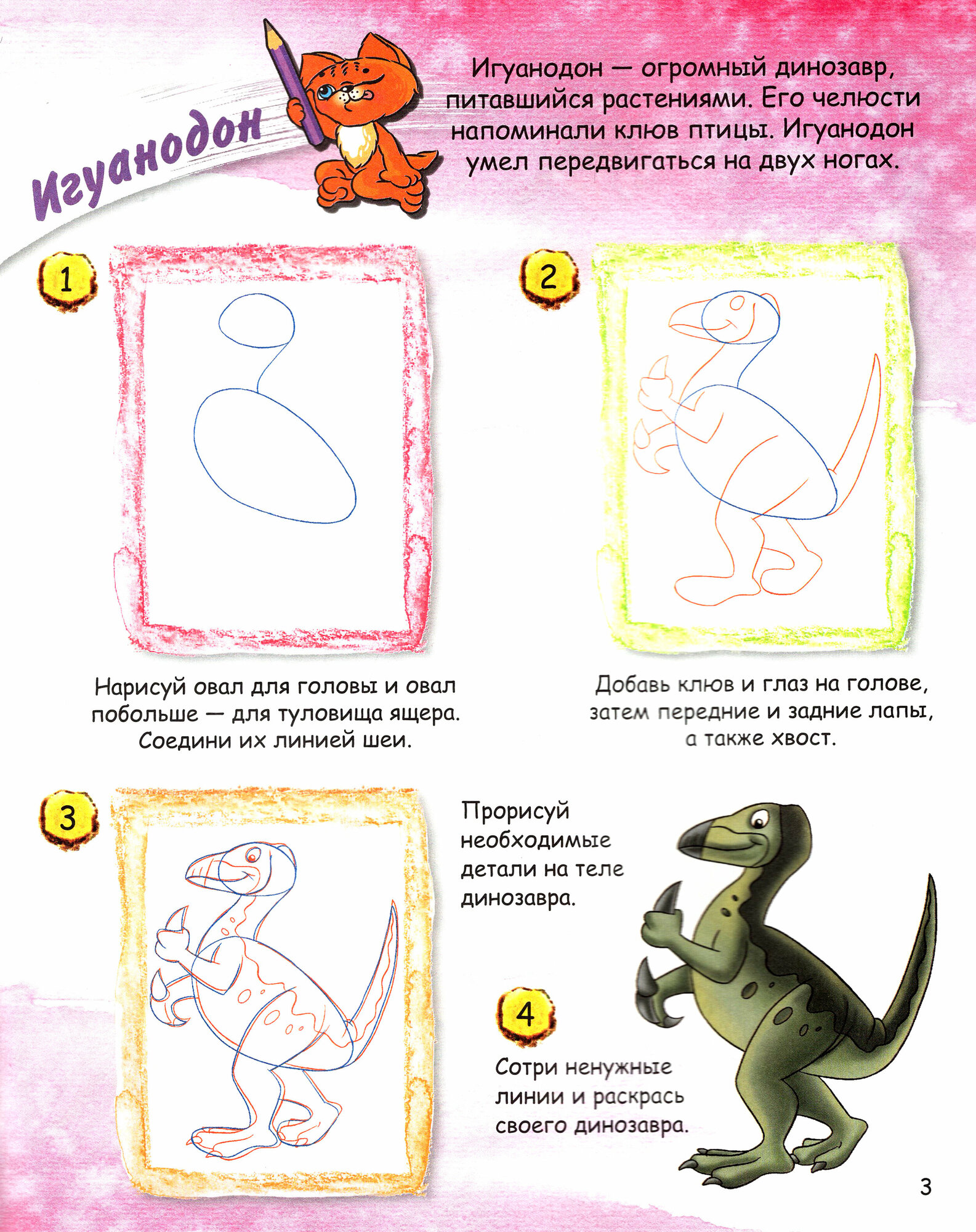 Книга в мягкой обложке, листы из плотного офсета, очень доступная тактика изображения динозавров с пояснениями шаг за шагом -