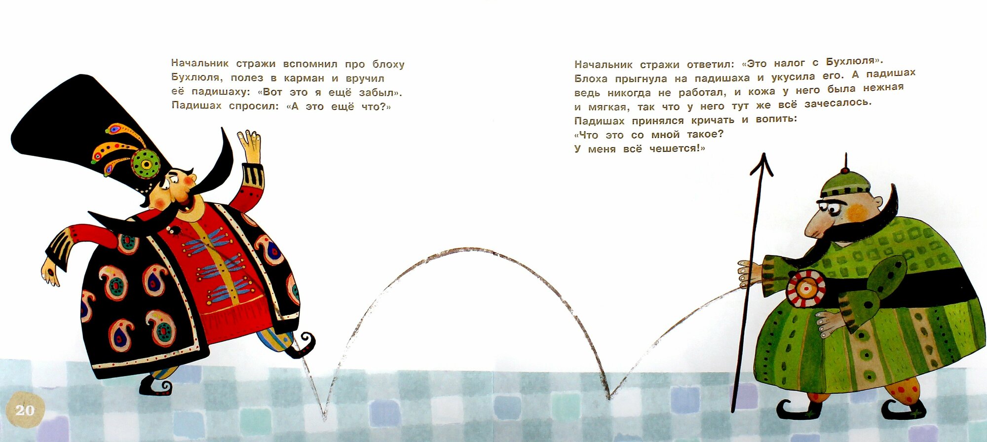 Уже лучше, чем "Дядюшка Навруз и сорок разбойников" из этой же серии про "сахарную страну" Шекарестан. Жадный падишах считает, что надо иметь всё самое большое, поэтому срочно собирает налоги со всех – даже последнюю блоху готов забрать у бедняка по имени Бухлюль. Ну и, само собой, за жадность он будет наказан, справедливость восторжествует) Книжка мне пришла мятая, но думаю, полежит на полке и разгладится.