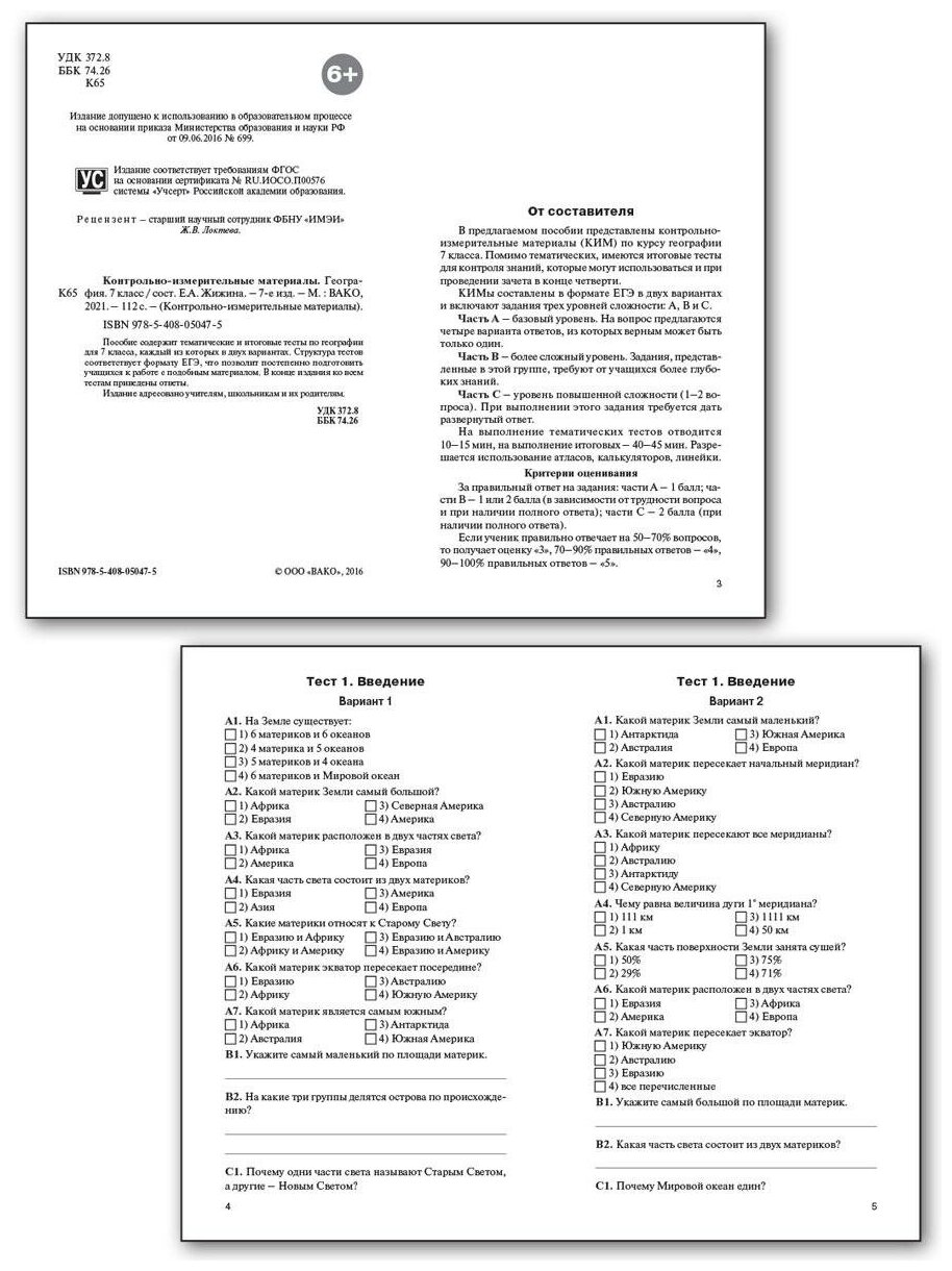 Книга: География. 7 класс (Жижина Е. (сост.)); Вако, 2017