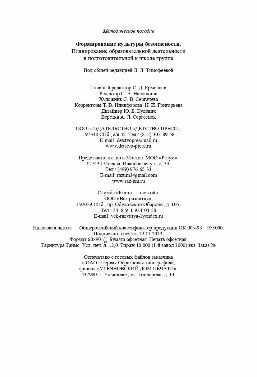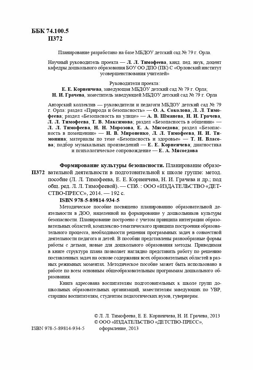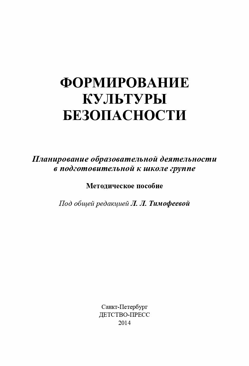Формирование культуры безопасности. Планирование образовательной деятельности в подготовительной к школе группе. Методическое пособие (Тимофеева Лилия Львовна, Грачева Наталья Ивановна, Корнеичева Елена Евгеньевна); Детство-Пресс, 2020