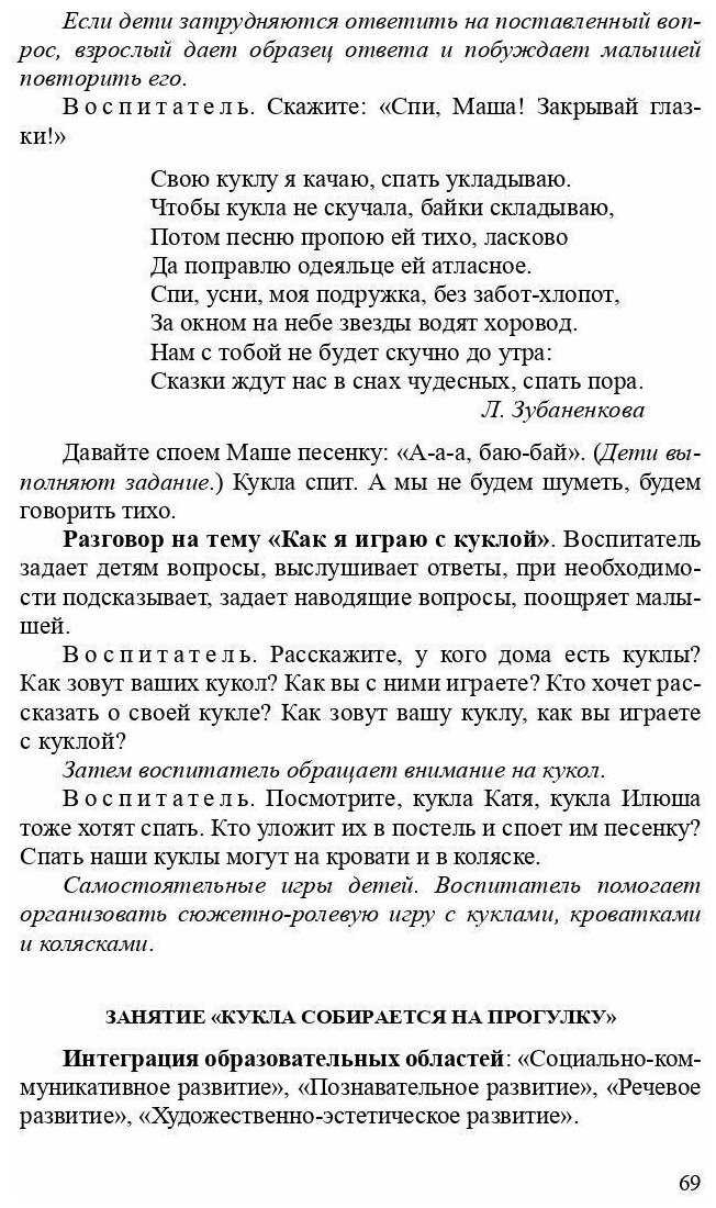 У меня,как у педагога,большая коллекция книг для подготовки занятий с детьми раннего возраста.Но книги этой серии одни из самых удачных.Книжка небольшого формата,в твёрдой обложке,удобна в работе.Все занятия посвящены конкретным темам,задания в них соответсвенно связаны непосредственно с изучением этой темы,что,на мой взгляд,является большим плюсом,так как во многих пособиях с конспектами комплексных занятий задания порой вразнобой. Занятия построены очень удачно,есть игровая часть,есть обыгрывание сказки или стиха на фланелеграфе,физкультминутки,дыхательные упражнения,удачно приведён список вопросов для детей по каждой теме.Для полноценного занятия только творческой части и пальчиковый игр не хватает,но в целом очень хорошие конспекты.Из всех пособий только из этих книг брала целиком занятие для работы.Плюс книги ещё и в том,что кроме тематических занятий в ней есть и занятия по отработке конкретных звуков.Жаль,что книги есть только для возраста 2-3 года.