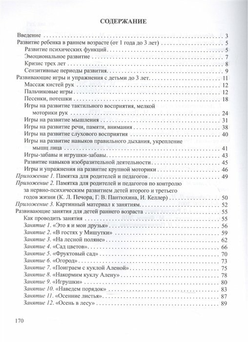В книге представлены игры и упражнения для детей раннего возраста, которые составят основу занятий, позволяющих развить мелкую и крупную моторику, координацию движений, восприятие, активную речь и мышление, память и внимание, навыки правильного дыхания и укрепление мышц лица, навыки изобразительной и игровой деятельности, а также навыки произвольного поведения, оптимизировать детско-родительские отношения. Также в пособии даны комплексные развивающие занятия для детей 2-3 лет (первая младшая группа).