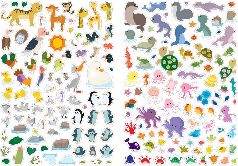 Животные. Книга с наклейками. Более 600 наклеек (Коллектив авторов); РОБИНС, 2021