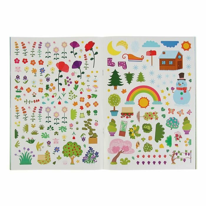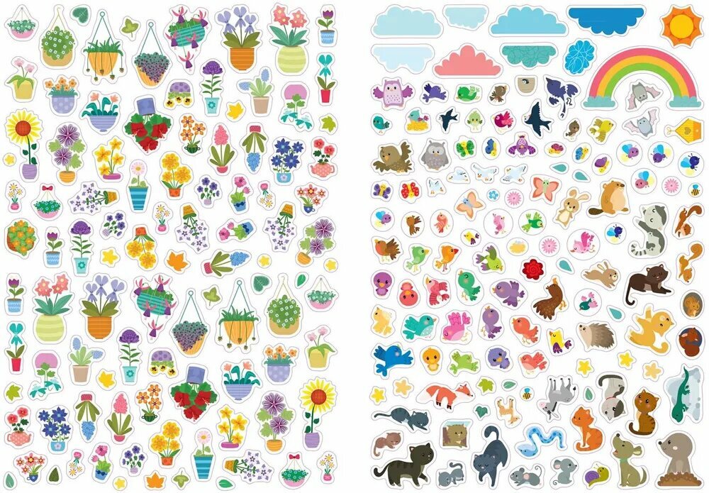 Ну ооочень довольна покупкой. Ребенок играл несколько недель. Каждый раз создавая свой окружающий мир. 600 штук наклеек это действительно невероятно много! Есть всякие мелочушки: звездочки, капельки. Если с ребенком использовать данную книжку как изучающий материал, на тему "давай вместе создадим", то у него будет восторг 100%. Нескончаемая тема для воображения вашего малыша, ведь окружающий мир в действительности очень разнообразен. Можно создавать картинки реальности, которую он действительно видит вокруг себя. Наклейки многоразовые, поэтому можно и "передумать" с растановкой объекта. Буду заказывать и другие темы.