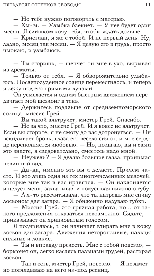 «Пятьдесят оттенков свободы» — третья книга трилогии Э Л Джеймс «Пятьдесят оттенков», которая стала бестселлером № 1 в мире, покорив читателей откровенностью и чувственностью. Чем закончится история Анастейши и Кристиана? Удастся ли им сохранить свою любовь?