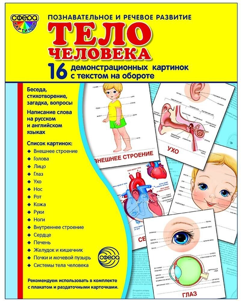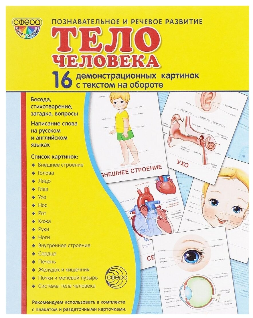 Познавательное и речевое развитие. Тело человека. 16 демонстрационных картинок с текстом на обороте (Цветкова Татьяна Владиславовна (редактор)); Карапуз, 2017