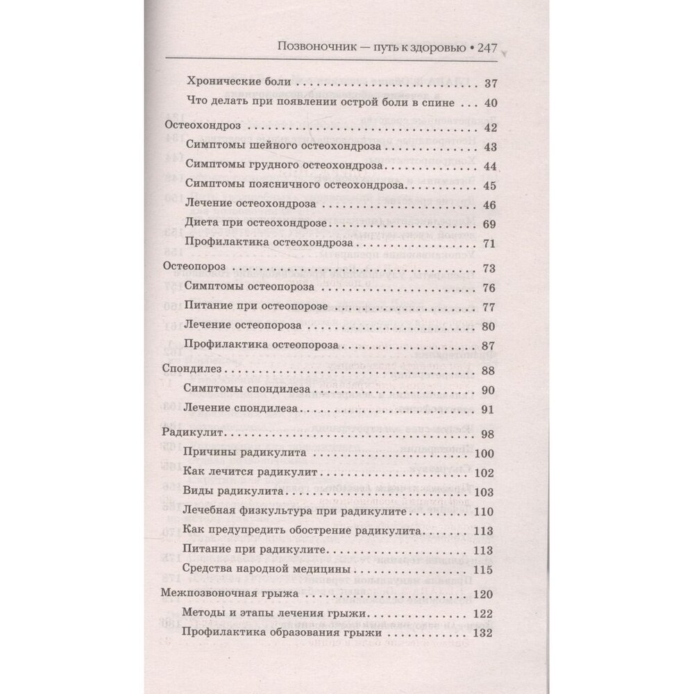 .В этой книге вы найдете советы по оздоровлению позвоночника знаменитого доктора Брэгга, сохранившего юношескую подвижность до глубокой старости, и рекомендации известного врача-ортопеда Р.Нордемара, упражнения йоги и старинные народные рецепты и методы лечения остеохондроза, а также `восточную мудрость веков`, представленную пальцевыми упражнениями, универсальными методами самомассажа по энергетическим меридианам, точечным массажем и др. Изучив и освоив представленный материал, вы без сомнения сможете омолодить свой позвоночник и сохранить здоровье всего организма.