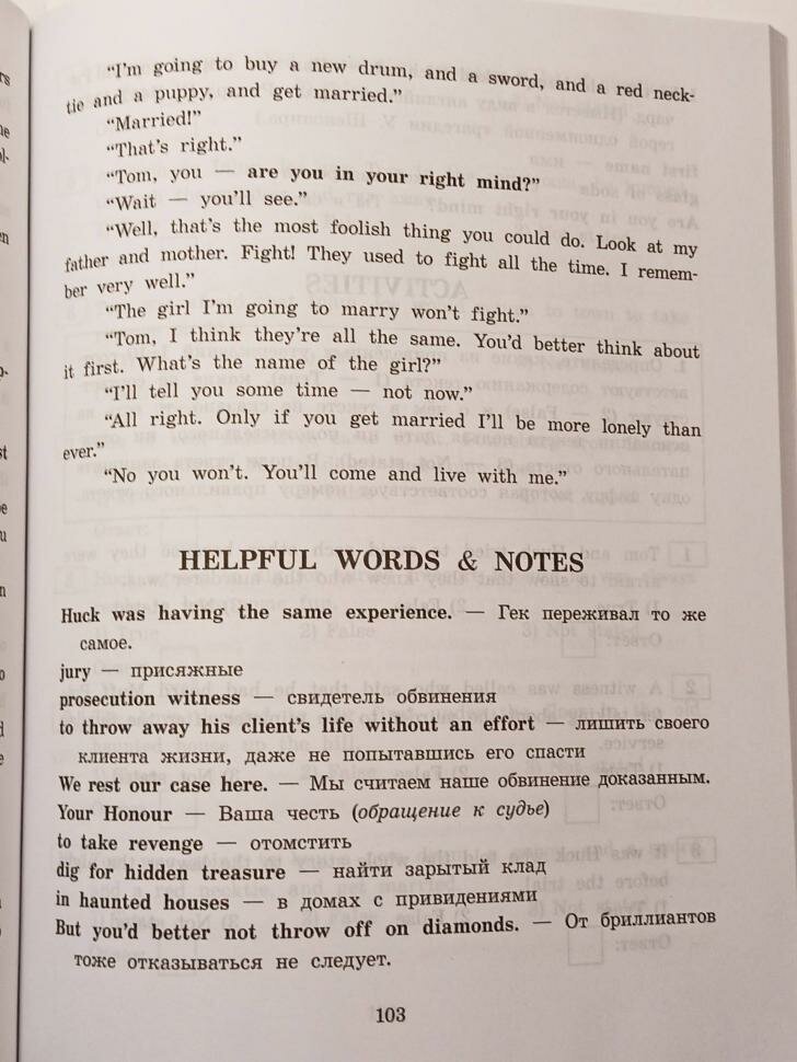 Очень хорошая книга, Марк Твен говорит сам за себя. Не смотря на заявленный уровень pre intermediate словарный запас и грамматика всё же не очень сложный и подойдут ученику класса седьмого и выше. В конце книги есть содержательный словарик на пять сотен слов, упражнения в самой книге даны по тексту и основаны на пересказе основных событий и происходящего.