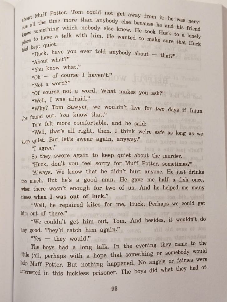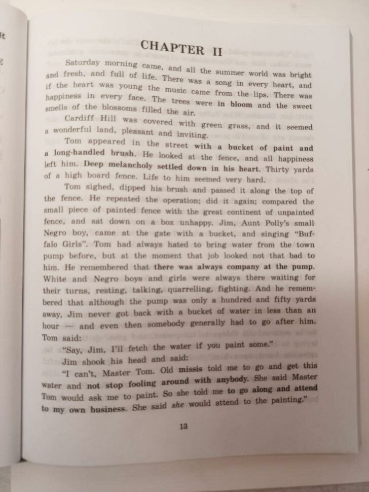 Отличнейшая книга! Прекрасно адаптированный текст, пояснения в конце каждой главы, словарь, картинки. Книга очень понравилась. Если вы взрослый то приготовьтесь к путешествию во времени и станьте отчасти таким же веселым и озорным мальчуганом как Том. Книга хорошо подойдет для мальчишек.