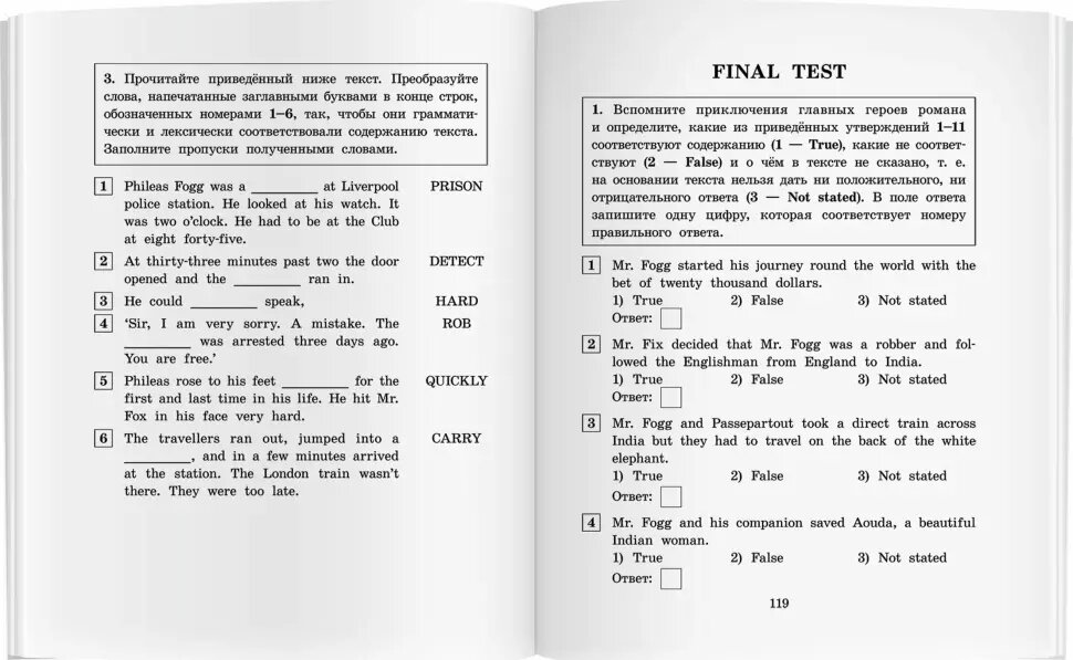 Книга представляет собой адаптацию увлекательного романа Жюля Верна "Вокруг света за 80 дней". Герой романа, Филеас Фогг, побился об заклад, что сумеет обогнуть земной шар с запада на восток в срок не более 80 дней, что было в то время предельно возможной скоростью, учитывая технические возможности транспорта. Путешествие Фогга начинается в Англии, далее он отправляется во Францию, Египет, Индию, Китай, Японию, Америку. По пути ему встречается множество опасностей, и Фогг не раз проявляет мужество и находчивость: в качестве средств передвижения он использует поезда, пароходы и даже слона, подвергается нападению индейцев, спасает от смерти прекрасную индийскую принцессу. Данное пособие поможет учащимся средней школы подготовиться к основному государственному экзамену по английскому языку. Текст пособия адаптирован в учебных целях до уровня Elementary. Каждая глава сопровождается комментарием, переводом трудных слов и выражений, а также упражнениями, направленными на формирование коммуникативной компетенции учащихся. Упражнения позволят сформировать коммуникативные умения в чтении, письменной речи и говорении, а также развить лексико-грамматические навыки. В конце пособия помещён словарь, а также тест в формате ОГЭ с ключами. Книга предназначена учащимся 5 - 8 классов образовательных организаций, а также широкому кругу лиц, изучающих английский язык.