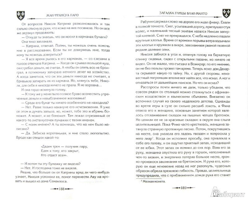 Франция, 1761 год. Юный Николя Ле Флок приезжает в Париж и приступает к изучению ремесла сыщика у генерал-лейтенанта королевской полиции господина Сартина, следователя по особым делам, который поручает Николя расследовать исчезновение комиссара Лардена. Предстоит не только выяснить, чей труп был обнаружен в подвале дома на улице Блан-Манто, где жил комиссар, но и разыскать хранившуюся у Лардена секретную переписку, компрометирующую фаворитку короля, мадам де Помпадур… "Загадка улицы Блан-Манто" - первый том из цикла детективов о расследованиях знаменитого комиссара Шатле популярного французского писателя Жан-Франсуа Паро.
