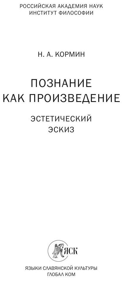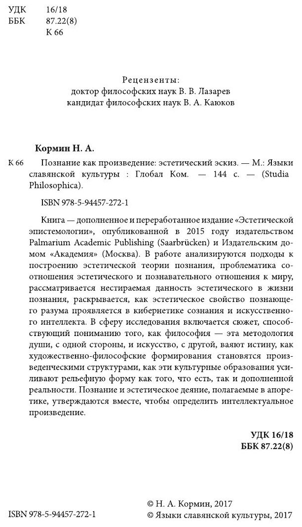 Познание как произведение. Эстетический эскиз (Н. А. Кормин); Языки Славянской Культуры, 2017