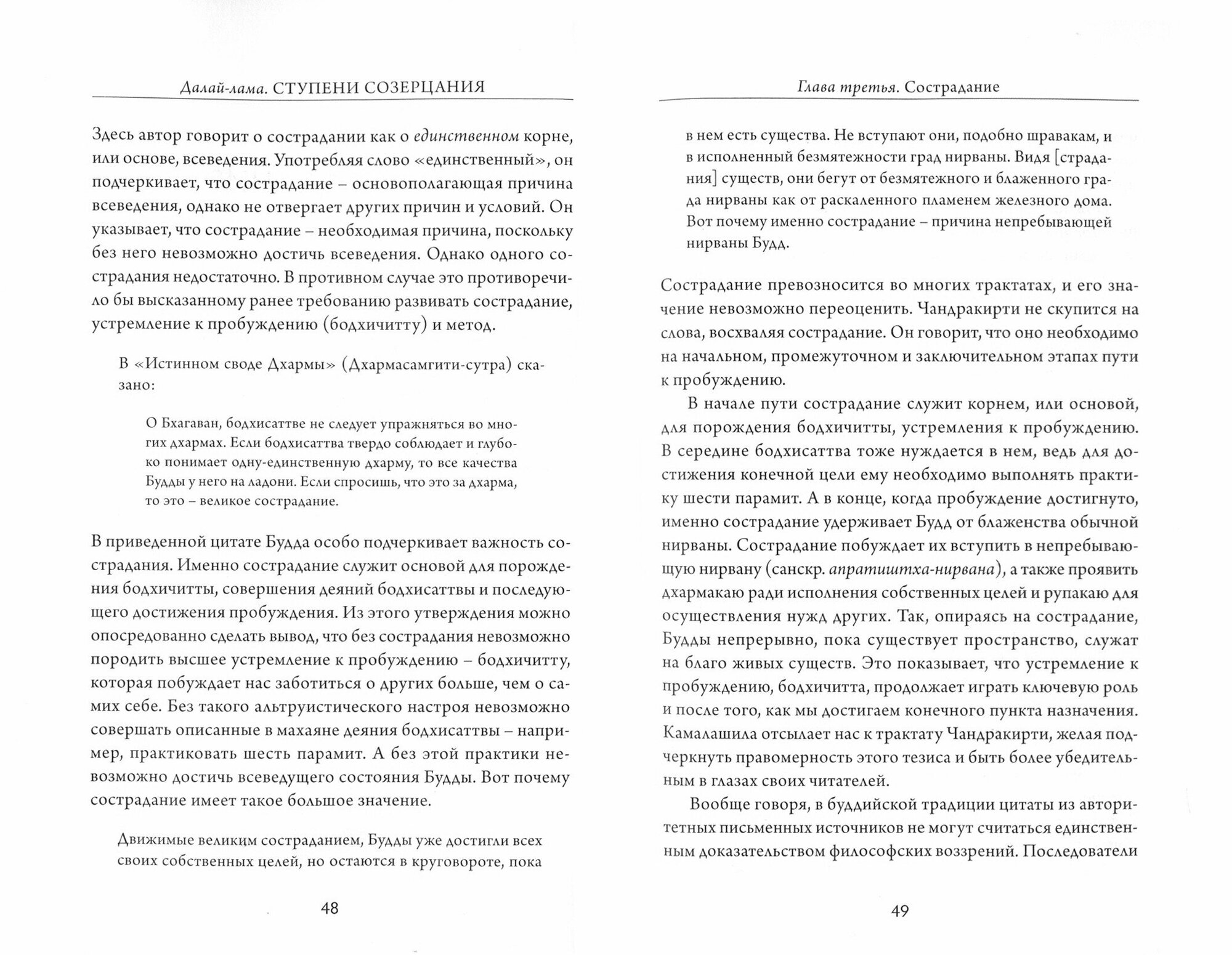 "Ступени созерцания" (Бхаванакрама) - трактат в трех частях, написанный индийским буддийским философом Камалашилой в Тибете в VIII веке по просьбе тибетского царя Трисонга Децена. В нем излагается метод постепенного духовного совершенствования, которого придерживались наставники древнеиндийского университета Наланда в противовес распространенной в то время в Китае и привнесенной в Тибет идее "мгновенного пробуждения". Придавая большое значение представлениям Камалашилы о последовательном освоении методов созерцания, Его Святейшество Далай-лама XIV регулярно дает устные комментарии ко второй части "Бхаванакрамы" в разных странах мира. Наставления, вошедшие в эту книгу, были дарованы им в Манали, в Индии, в 1989 году.